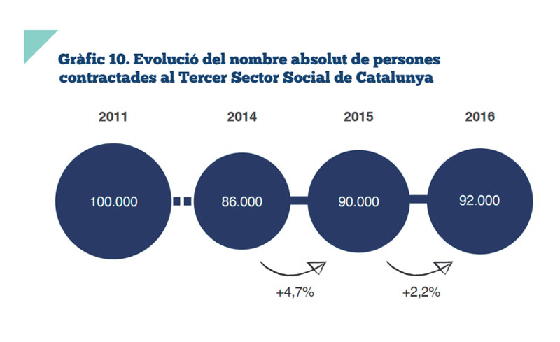 El Tercer Sector Social dona feina a 92.000 persones i no percep recuperació econòmica malgrat pujar la contractació. Ha reclamat a Lleida un model de col·laboració amb l'administració pública.
