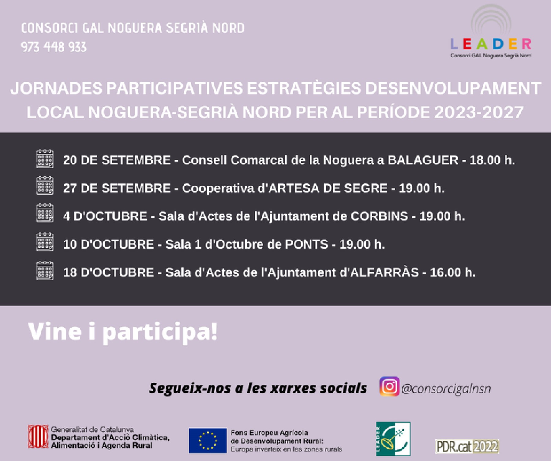 El Consorci GAL Noguera-Segrià Nord treballa en l'estratègia per al nou període 2023-2027 dels ajuts LEADER i organitza sessions participatives i una enquesta en línia