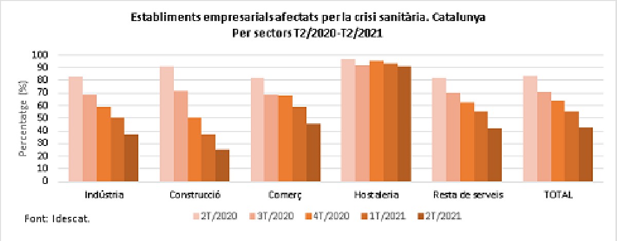 El 42,7% dels establiments empresarials de Catalunya es declaren afectats per la crisi sanitària al segon trimestre del 2021