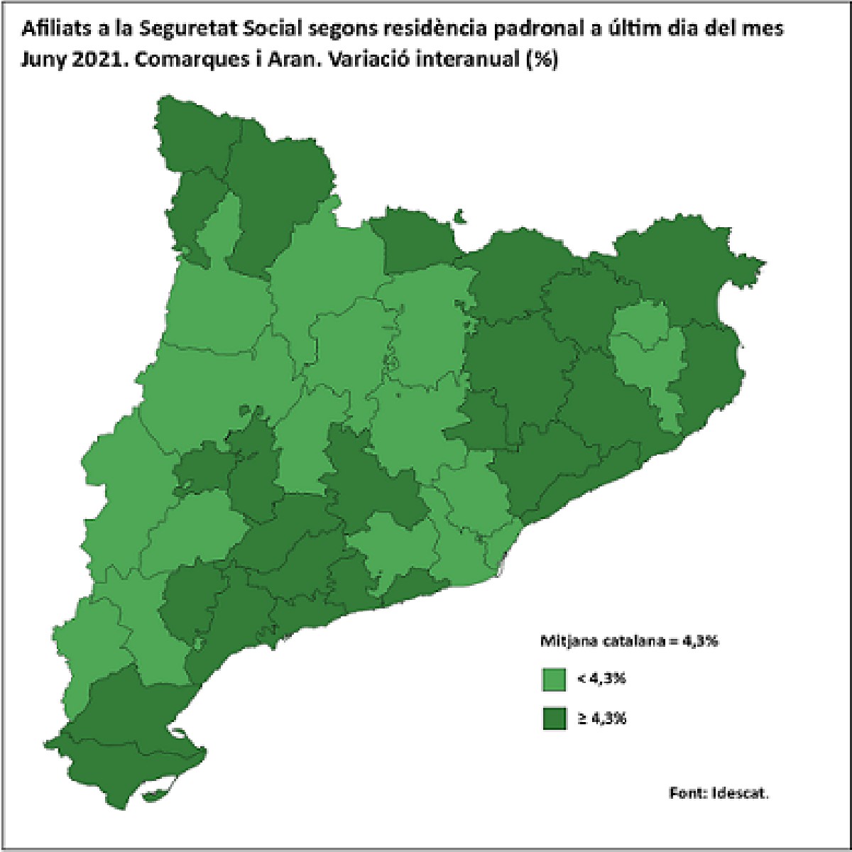 Els afliliats a la Seguretat Social augmenten en totes les comarques a 30 de juny, respecte a un any enrere