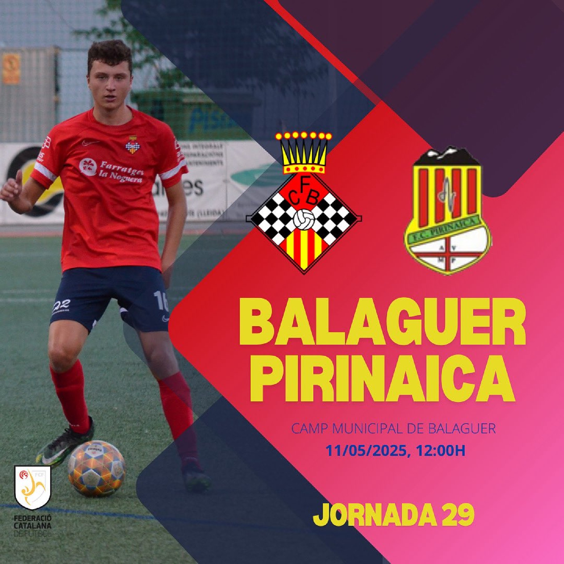 Penúltim partit i últim com a local del primer equip del Club Futbol Balaguer, que rep diumenge al Pirinaica. El juvenil endarrereix la jornada a dimecres per jugar a Lleida