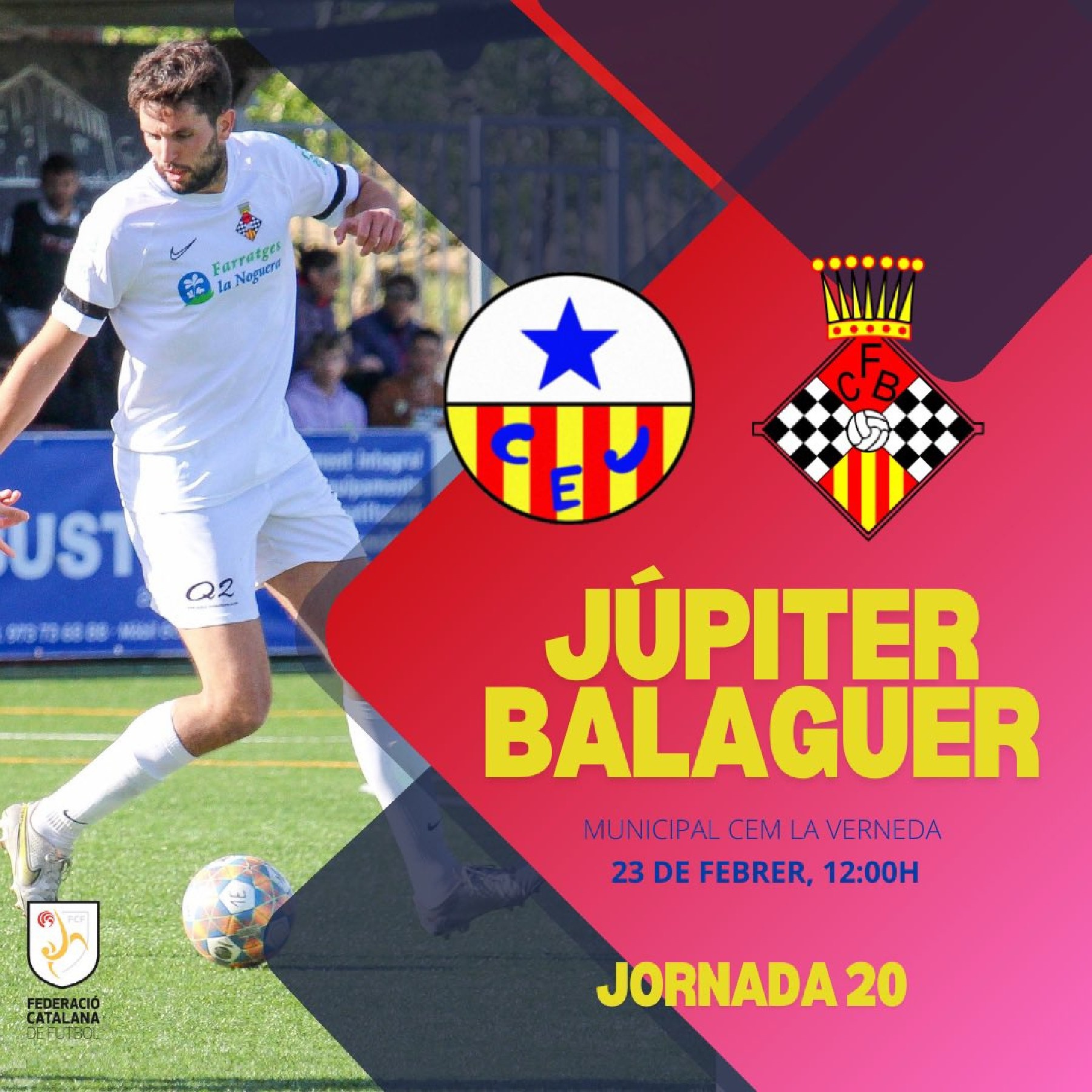 El primer equip del Club Futbol Balaguer juga aquest diumenge al camp del Júpiter, el segon classificat. El juvenil rep dissabte a les 6 de la tarda al municipal de Balaguer al Futbol Base Reus