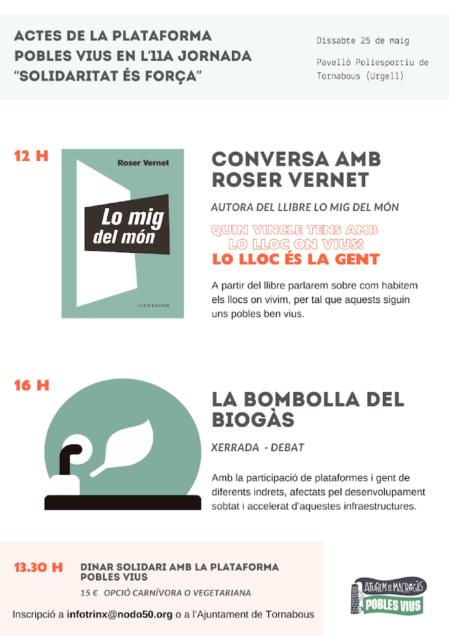 La plataforma Pobles Vius presentarà al·legacions a l'autorització ambiental per a la central de biogàs de la Sentiu de Sió. Aquest dissabte farà una jornada informativa a Tornabous