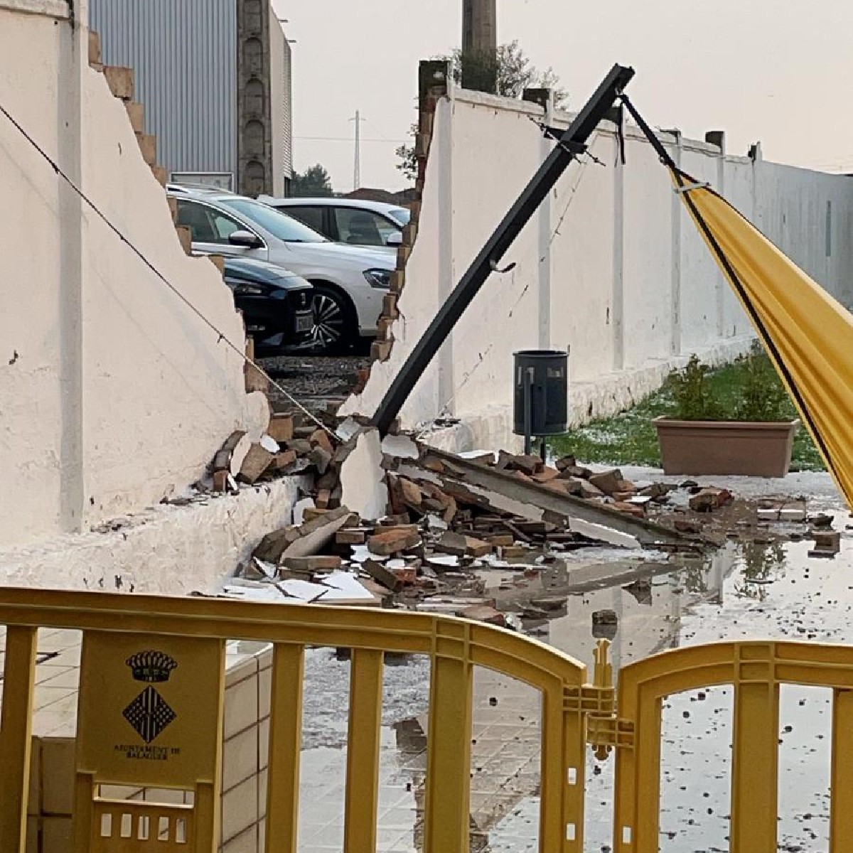 La tempesta de dissabte ha afectat alguns equipaments municipals de Balaguer, com la piscina coberta on ha caigut part d'una paret. Tot i això, són danys menors 'tenint en compte la gran quantitat d'aigua i pedra que va caure en poca estona'