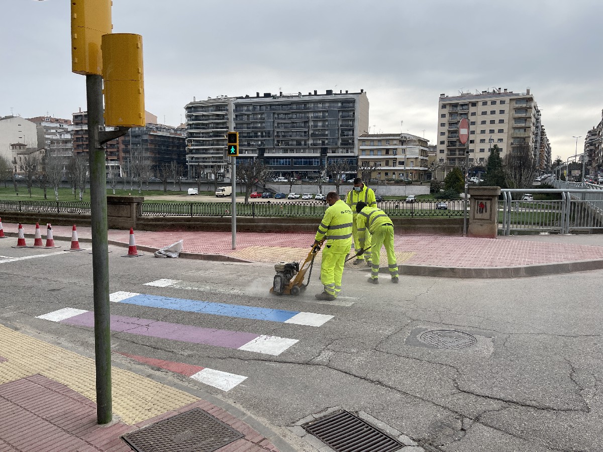 La Paeria de Balaguer ultima els treballs per donar per acabat el baixador que s'ha habilitat a la cruïlla entre el carrer de la Banqueta i el pont nou. Aquest divendres s'estan pintant els passos de vianants
