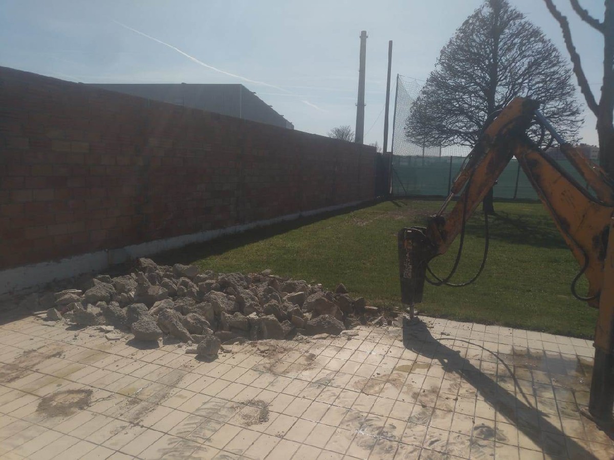 La Paeria de Balaguer amplia la zona de gespa a la piscina del poliesportiu. Els treballs van començar fa uns dies però ara s'han aturat per evitar contagis del coronavirus