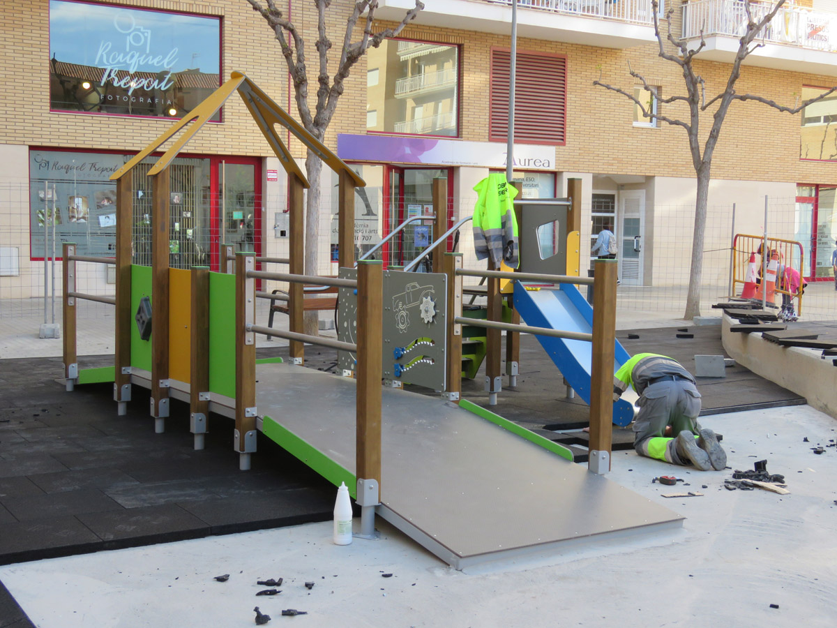 L'ajuntament de Balaguer presenta el nou espai de joc inclusiu a la plaça Lluís Companys. S'hi ha col·locat el primer parc adaptat, inclusiu de la ciutat després que s'hagi eliminat el sorral que hi havia
