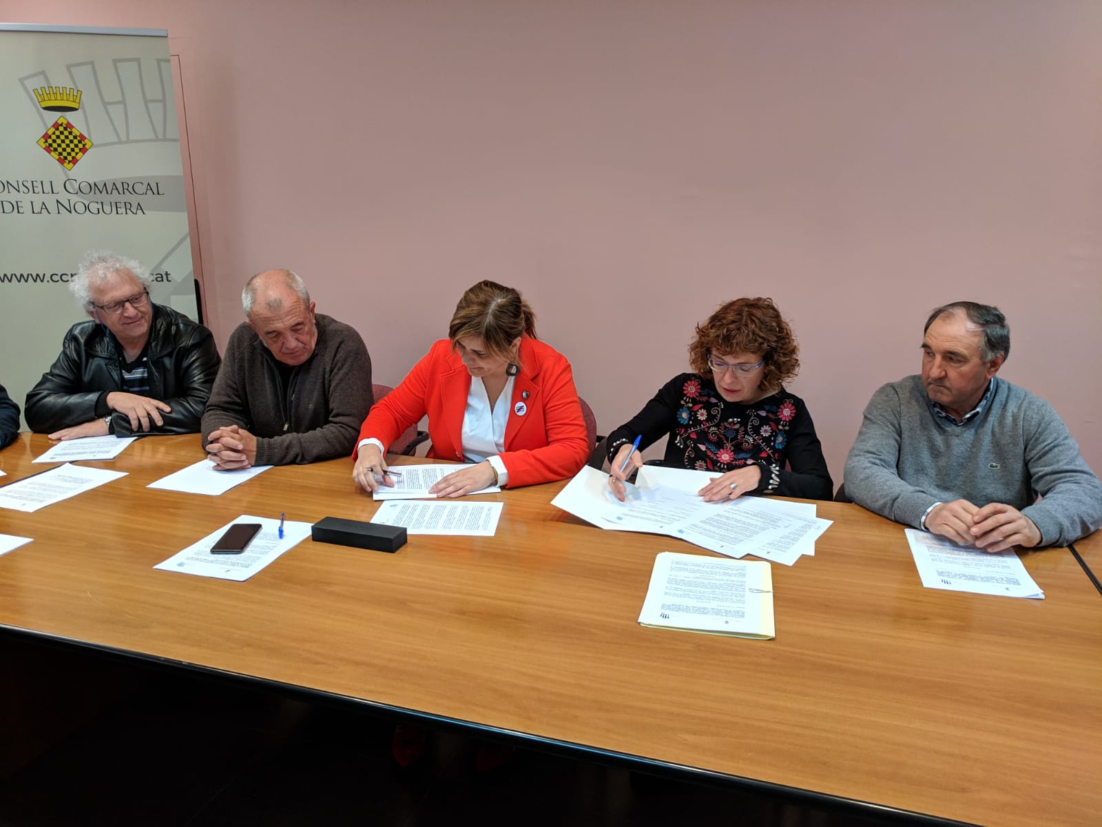 Els consells de la Noguera i la Ribagorça signen un conveni de col·laboració pel manteniment de la passarel·la que travessa el congost. Els municipis a l'entorn de Mont-rebei fan una crida a limitar la navegació i l'excés de visitants.