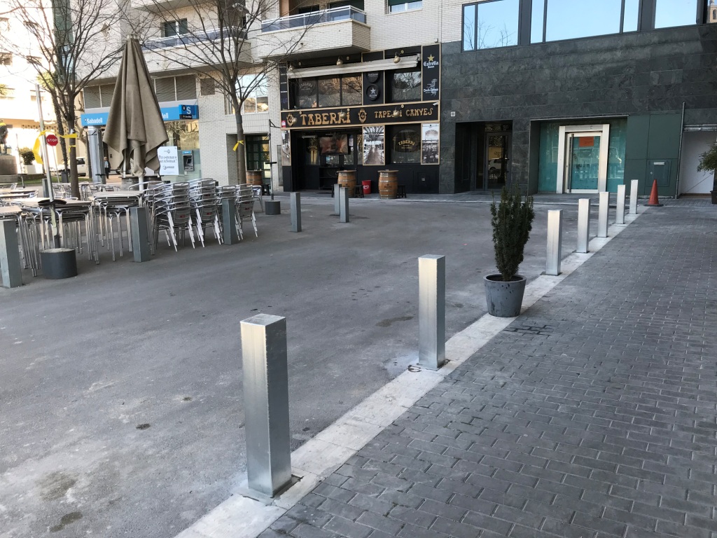 L'ajuntament colloca pilones la plaça Pau Casals per evitar que hi aparquin vehicles que causen molèsties de mobilitat als veïns