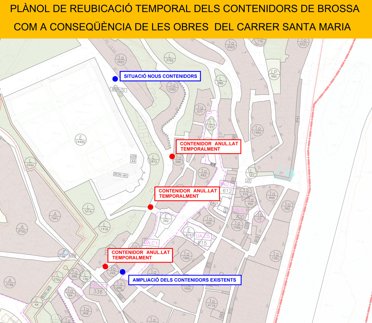 L'ajuntament de Balaguer tallarà al trànsit el carrer de Santa Maria el proper dilluns per l'inici de les obres d'urbanització. Aquest fet obligarà també a desplaçar els contenidors d'escombraries de la zona