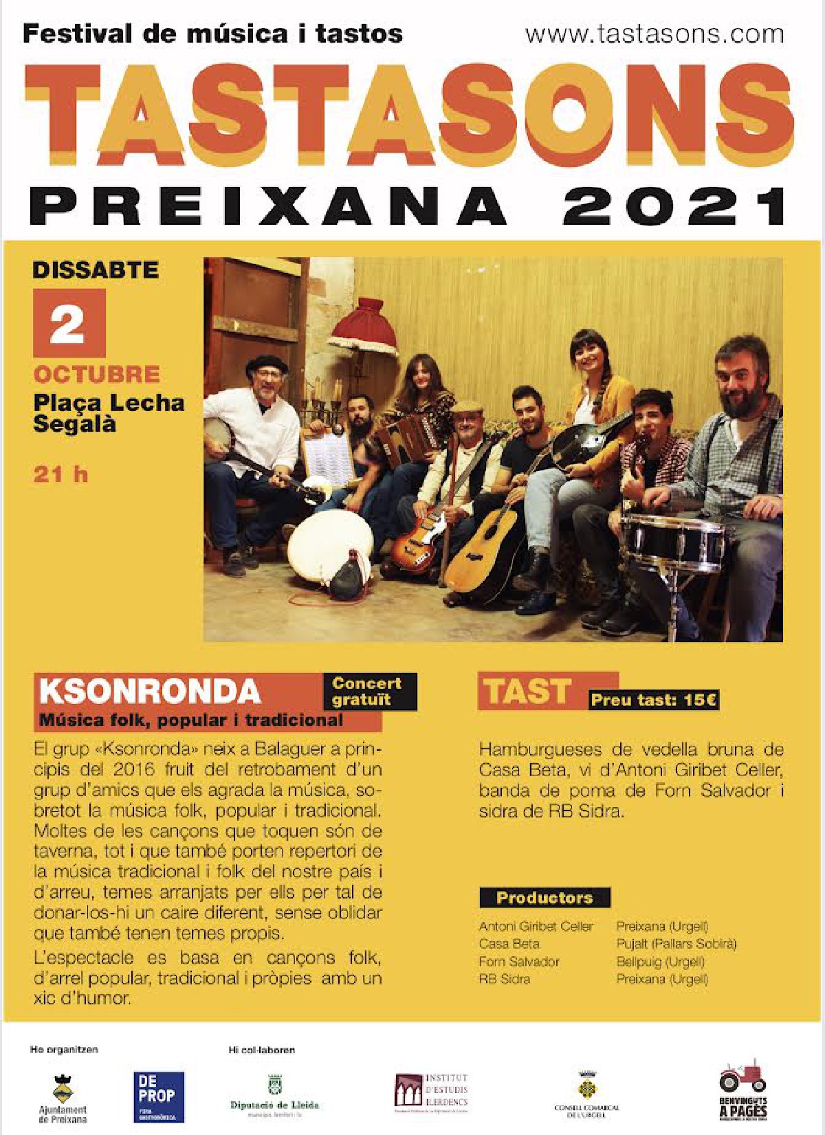 Els balaguerins Ksonronda seran uns dels protagonistes de la festa del Tastasons de Preixana, un festival que combina música i gastronomia de proximitat i que aquest proper 2 d'octubre torna a la presencialitat