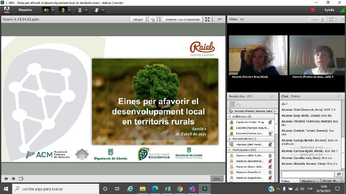 El Patronat de Promoció Econòmica de la Diputació de Lleida promou un curs per cercar eines per afavorir el desenvolupament local en territoris rurals. La primera jornada, via telemàtica, ha comptat amb 47 alumnes