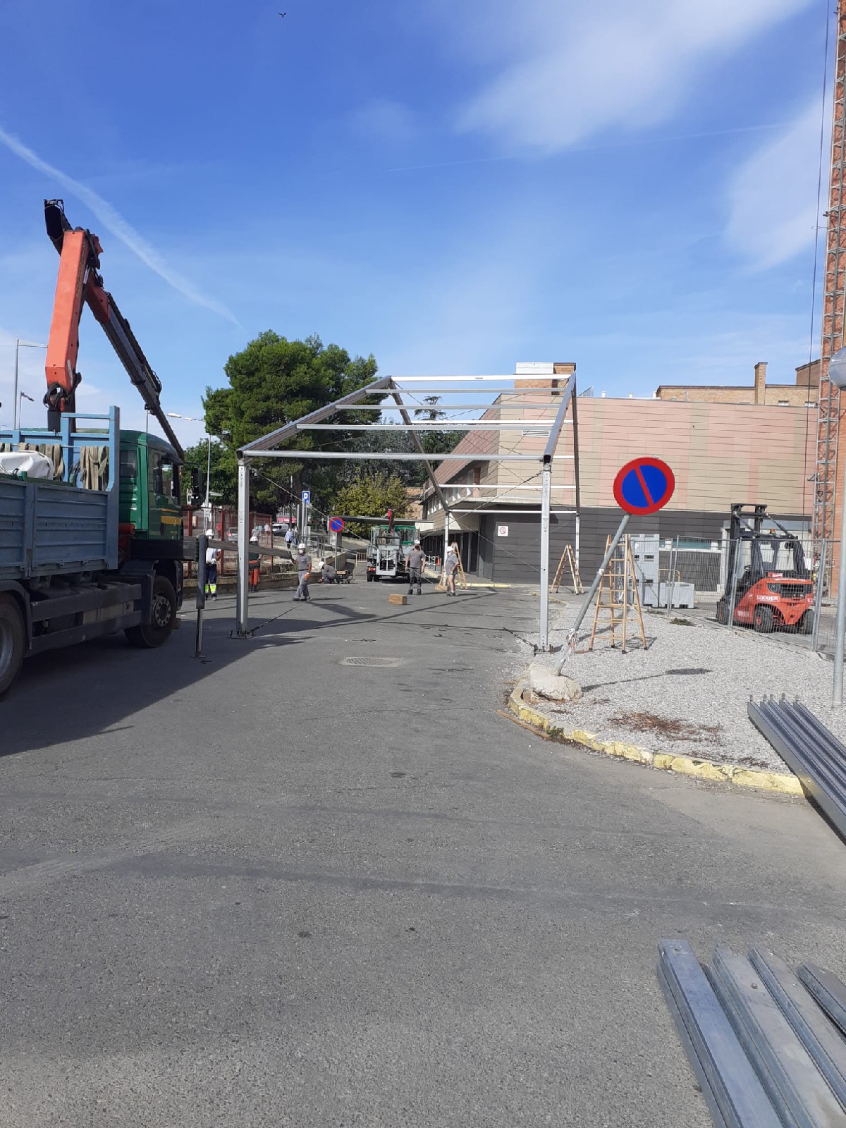 Desmuntatge de la carpa de la Diputació que acollia les instal·lacions provisionals del SEM a l'Hospital Arnau de Vilanova. Estava situada a l'exterior del servei d'Urgències i funcionava des del passat mes de juliol.