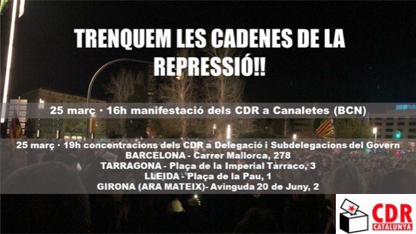 La Fiscalia actuarà 'amb contundència' contra els CDRs, a qui atribueix possibles delictes de rebel·lió i malversació. Des de la CUP ja han expressat el seu suport incondicional als Comitès de Defensa de la República.