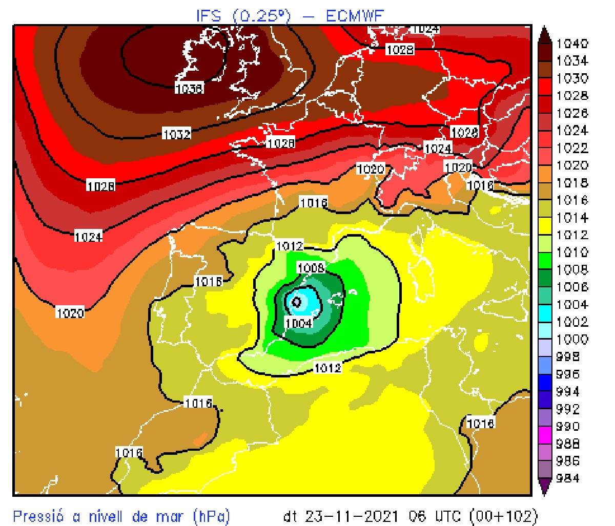 Entre dilluns 22 i dimecres 24 es preveu un episodi de pluja a Catalunya, que podria donar lloc a acumulacions importants a punts de la meitat est i de la resta del litoral i prelitoral