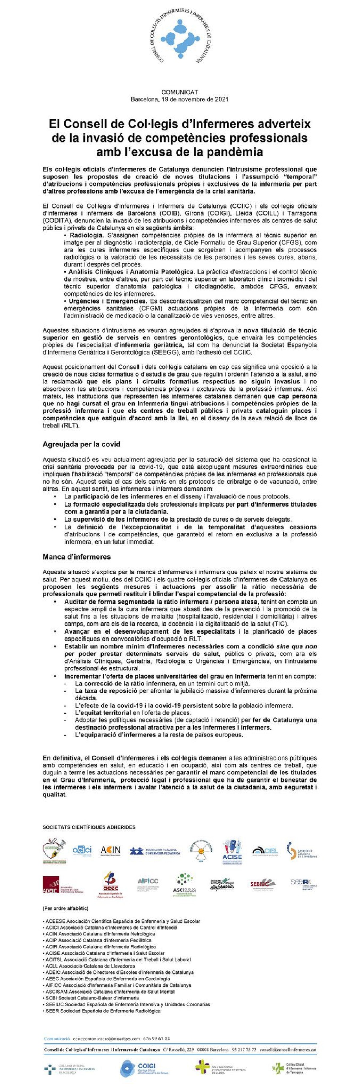El COILL denúncia la invasió de competències professionals de les titulades de Grau d'Infermeria, amb l'excusa de la pandèmia