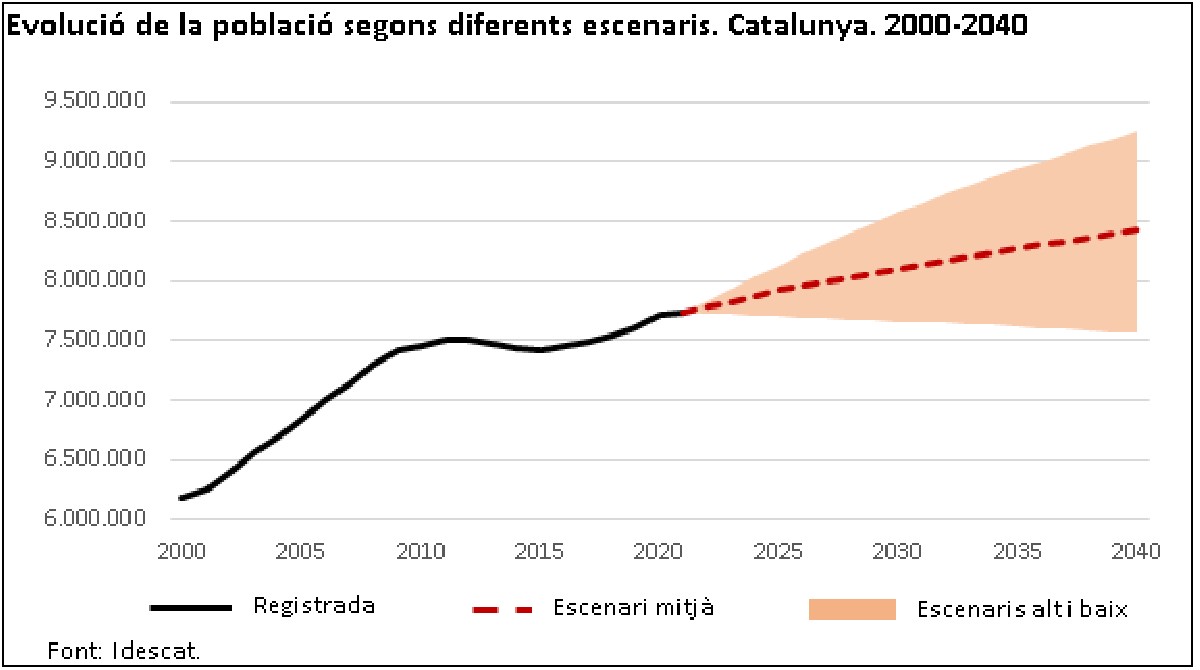 L'Idescat preveu sumar uns 180.000 ciutadans fins al 2025 i recuperar l'esperança de vida precovid el 2022. La projecció és que els naixements es recuperin però que no s'arribi als nivells del 2019