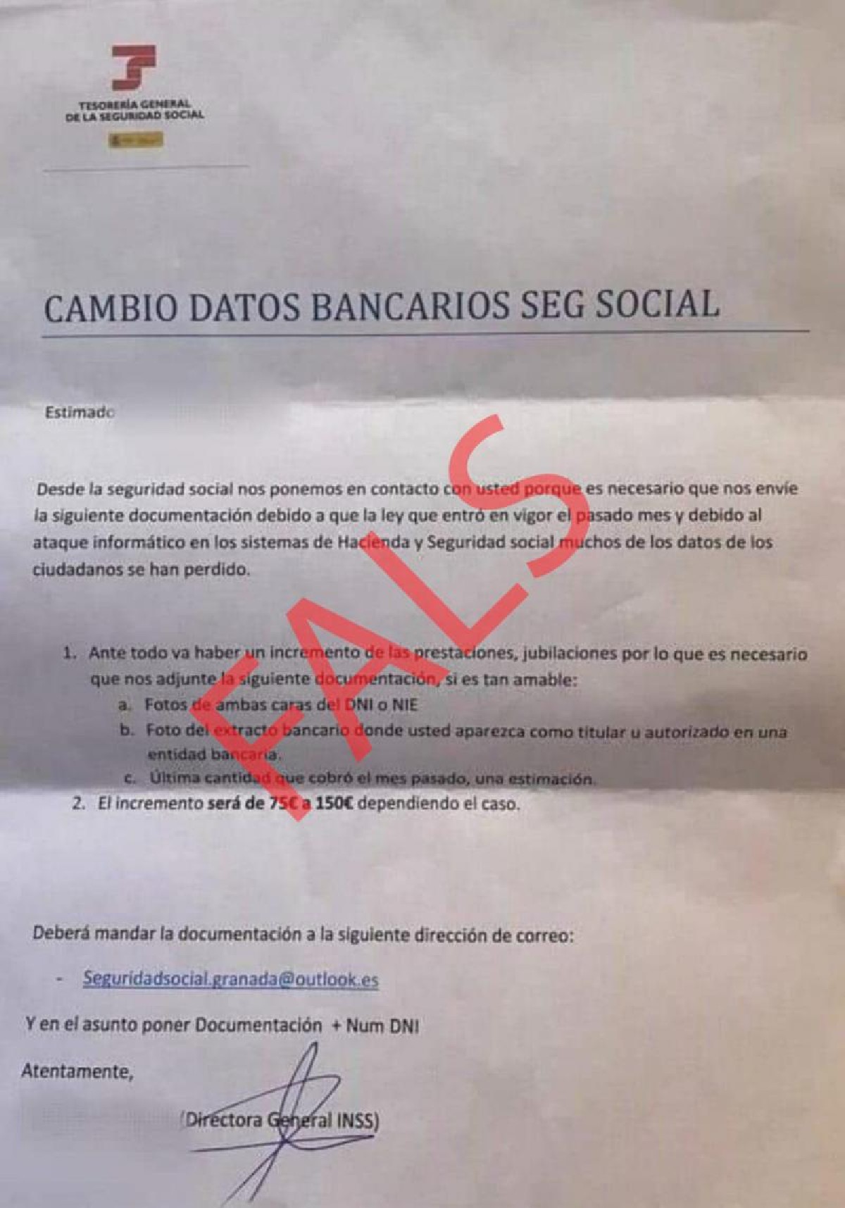 Els Mossos alerten d'una estafa a la gent gran per correu ordinari on els delinqüents suplanten la Seguretat Social. Els autors intenten obtenir dades personals amb el pretext de l'augment de les pensions