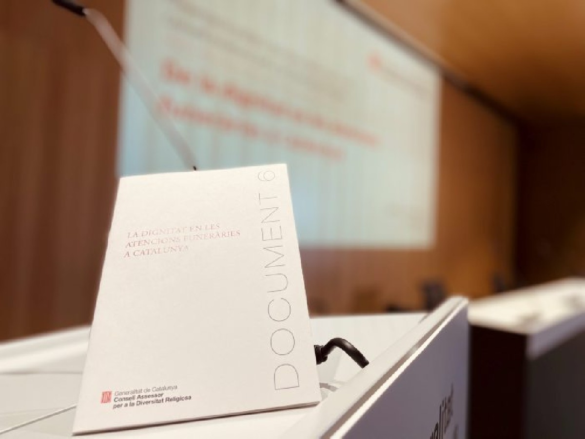 Justícia presenta el document 'La dignitat en les atencions funeràries a Catalunya'. El text ofereix una sèrie de recomanacions a ajuntaments, empreses funeràries i comunitats religioses per respectar la diversitat religiosa i cultural