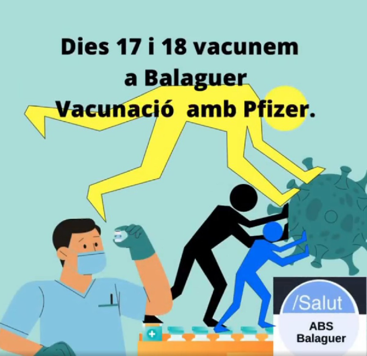 Salut obre la vacunació sense cita prèvia les tardes d'agost. A Balaguer s'administraran aquesta setmana vacunes de Pfizer sense cita prèvia aquest dimarts dia 17 de 4 a 8 de la tarda al Casal Lapallavacara i dimecres dia 18 de 4 a 7 de la tarda al CAP