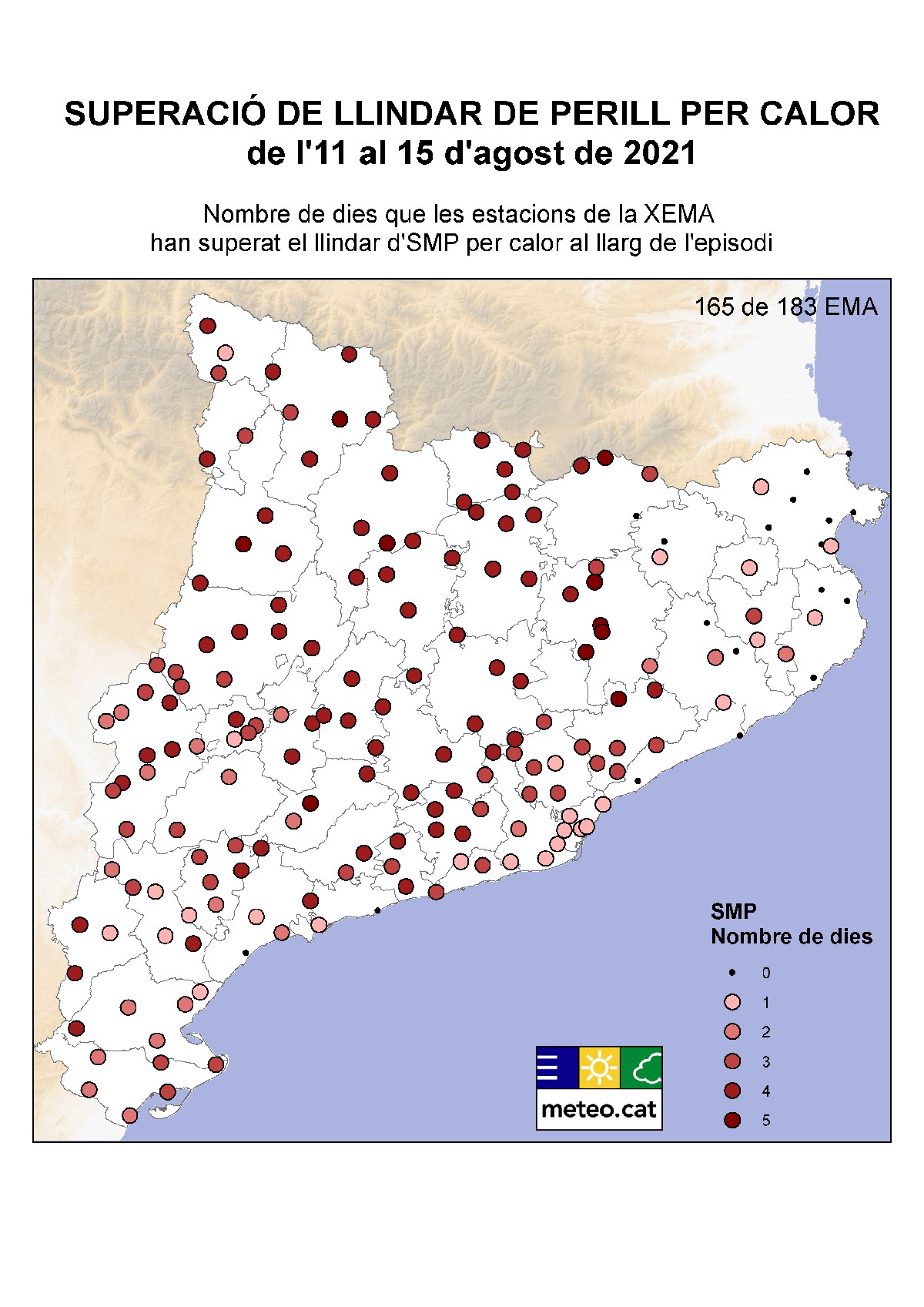 L'onada de calor ha deixat màximes de fins a 43 ºC a Catalunya. Entre dijous i diumenge s'han assolit els 40 ºC a diversos sectors de l'interior i dissabte es van superar els 43 ºC al Pallars Jussà