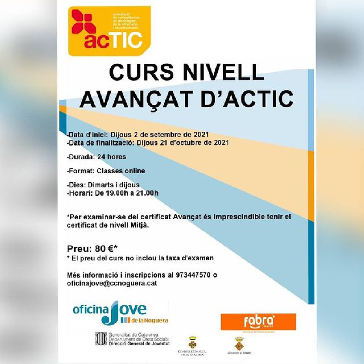 L'Oficina Jove de la Noguera ofereix novament el curs d'ACTIC Avançat per a totes aquelles persones que es vulguin preparar per obtenir aquesta certificació. Les inscripcions ja estan obertes