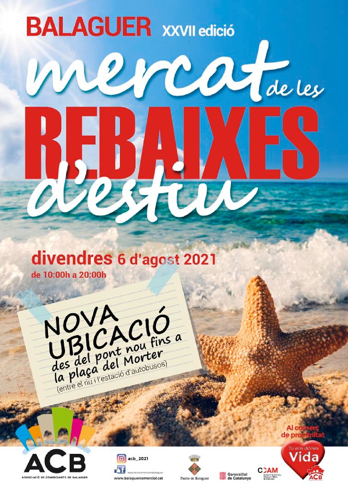 L'Associació de Comerciants de Balaguer celebra divendres 6 d'agost la 27a edició del Mercat de les Rebaixes, que canvia d'ubicació. Es farà entre el Pont Nou i la plaça del Morter de 10 del matí a 8 de la tarda