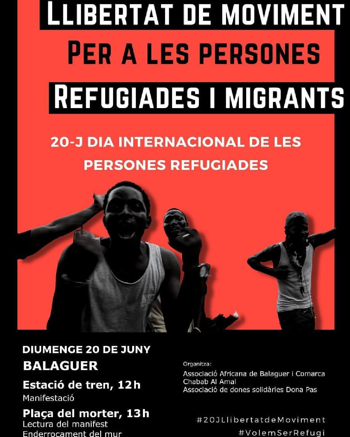 Balaguer serà escenari aquest diumenge 20 de juny d'una manifestació a favor de la llibertat de moviment per a les persones refugiades i migrants. Sortirà de l'estació de trens i acabarà a la Plaça del Morter, amb la lectura d'un manifest