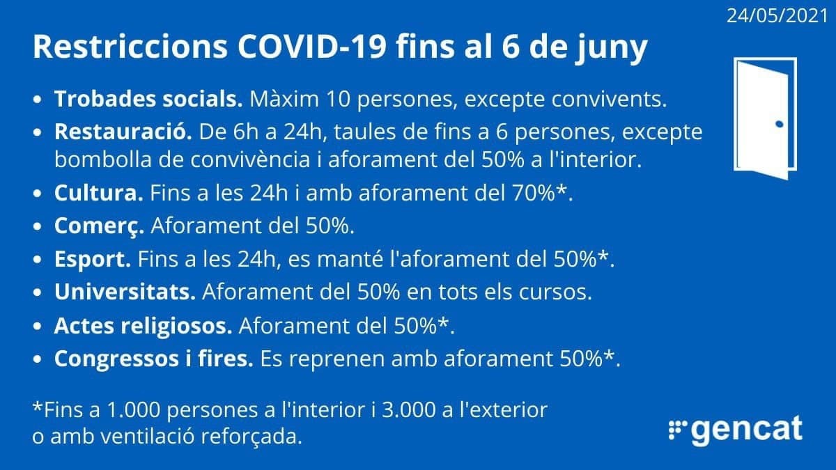 Noves restriccions més flexibilitzades fins al 6 de juny