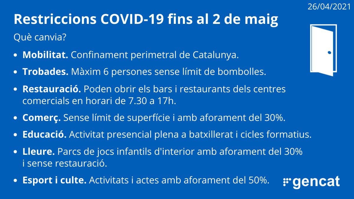 S'acaba el confinament comarcal dues setmanes després de la seva reinstauració. El Govern aixeca la restricció de mobilitat interna que va recuperar passada Setmana Santa