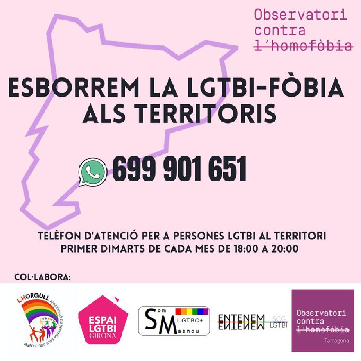 L'Observatori Contra l'Homofòbia activa una línia de WhatsApp per atendre víctimes d'LGTBifòbia El servei s'ha coordinat amb entitats municipals i està actiu la tarda del primer dimarts de cada mes