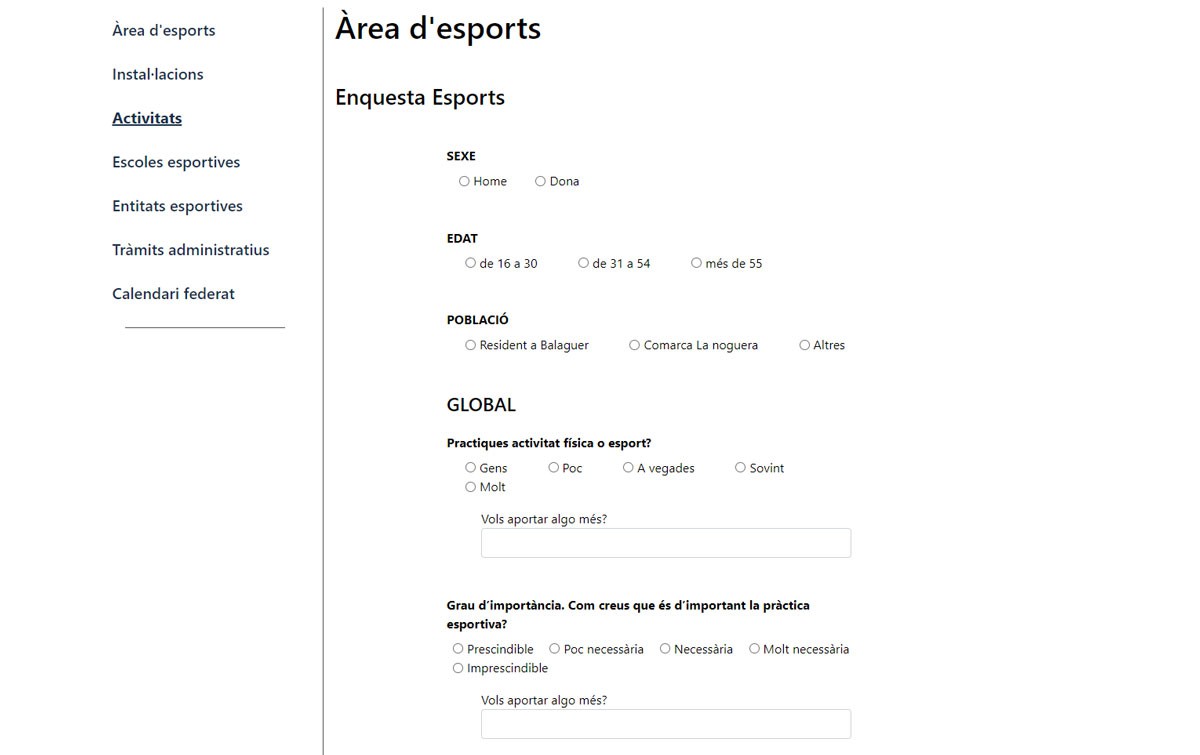 L'Àrea d'Esports de la Paeria de Balaguer posa en marxa una enquesta de participació ciutadana per elaborar un projecte a curt i llarg termini sobre com ha de ser la gestió de l'esport i l'activitat física en general a la ciutat