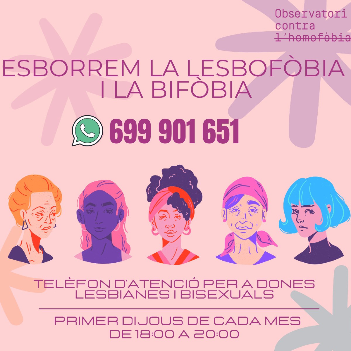 L'Observatori Contra l'Homofòbia obre una línia de WhatsApp dirigida de manera exclusiva a dones lesbianes i bisexuals. La iniciativa vol facilitar la denúncia després de constatar que el registre d'incidències del col·lectiu és menor