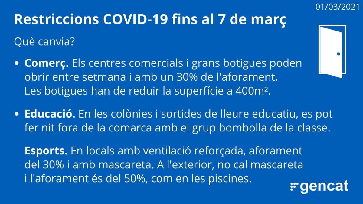 El DOGC autoritza l'obertura dels centres comercials i les colònies amb el grup bombolla a partir de dilluns. La resolució també permet que les botigues grans aixequin la persiana acotant l'espai a 400 m2 i amb 30% d'aforament