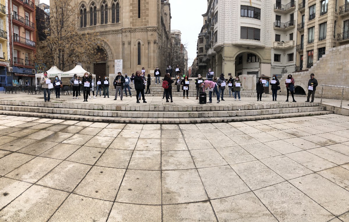 Concentració de la UGT-Terres de Lleida i CCOO Lleida per exigir un salari digne per la plantilla del comerç