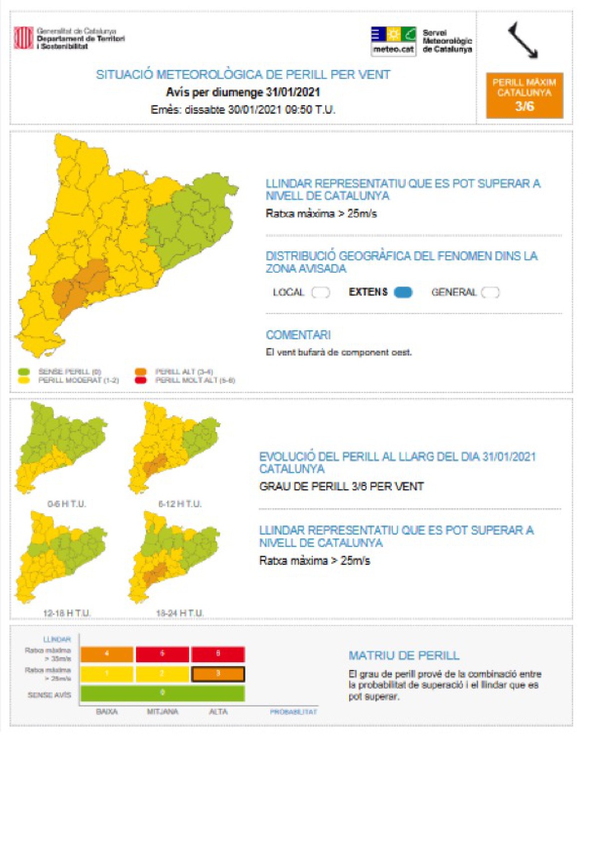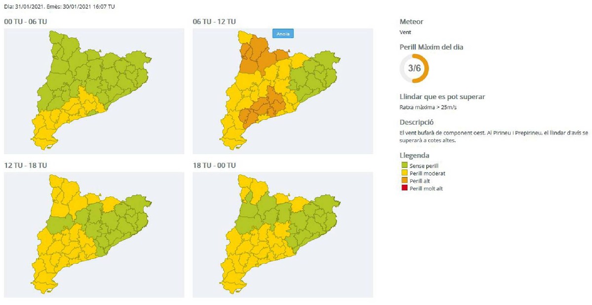 Protecció Civil de la Generalitat activa l'Alerta del pla VENTCAT per la previsió de forts vents avui i sobretot demà