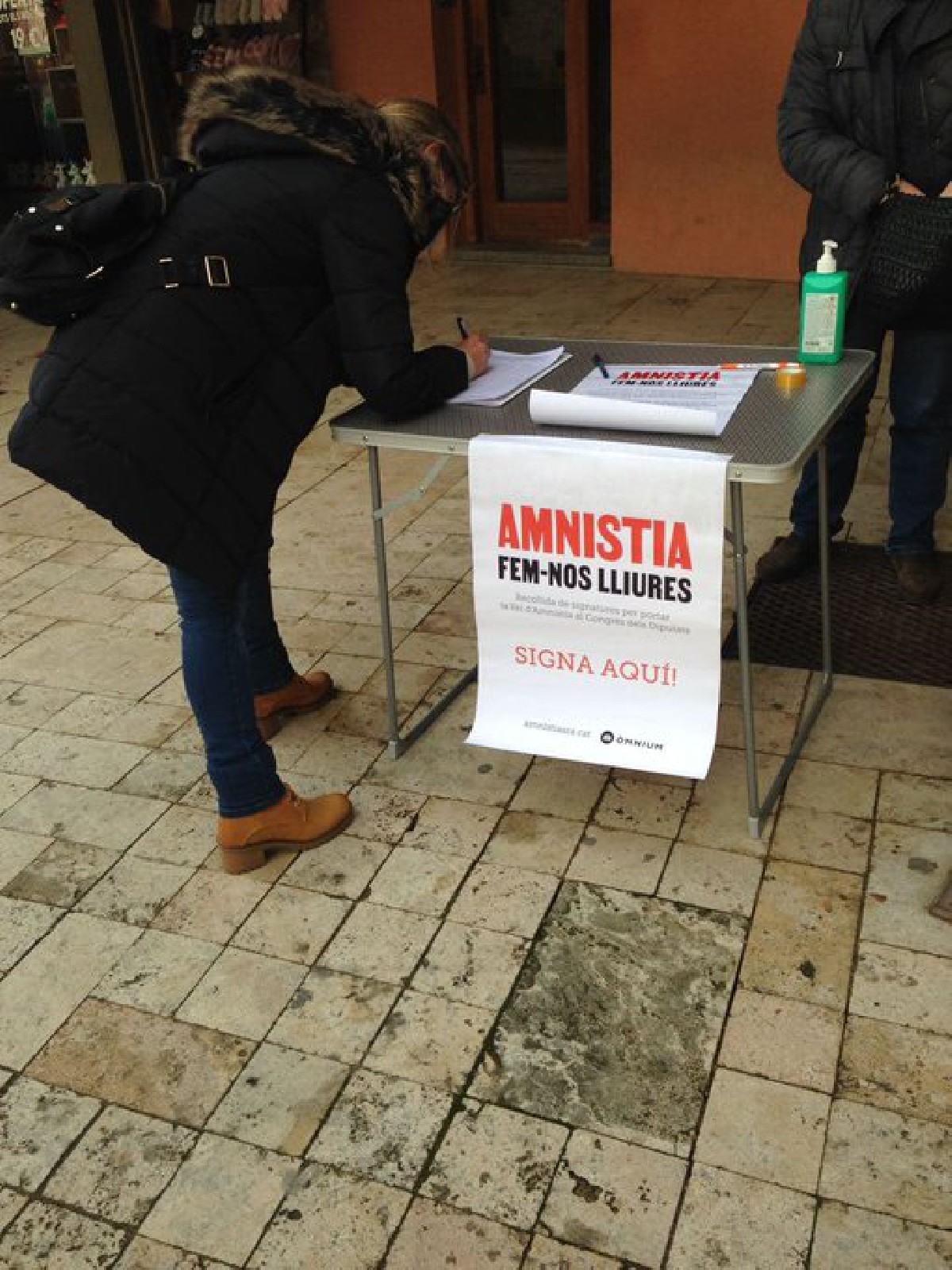 Òmnium recull 15.000 firmes per portar la llei d'amnistia al Congrés dels Diputats. L'entitat ha desplegat un centenar de parades per tot Catalunya en el marc d'una nova campanya