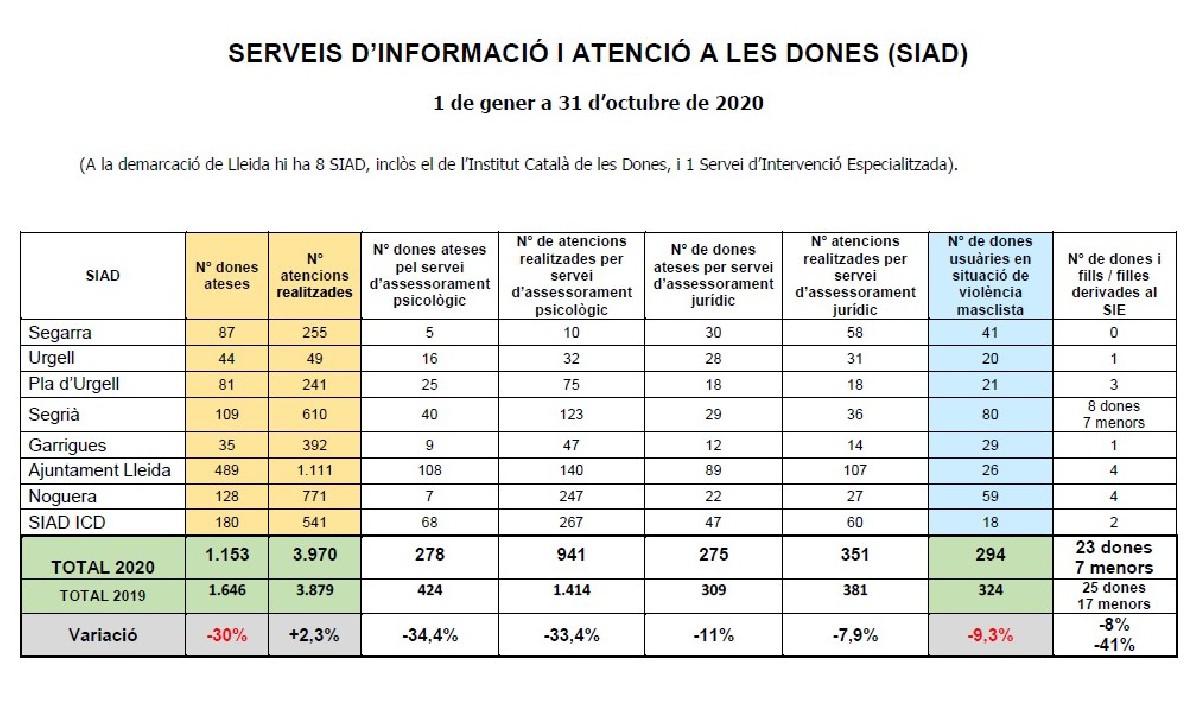 Els SIAD de la vegueria de Lleida incrementen aquest any el nombre d'assessoraments del 2019 malgrat atendre un 30% menys de dones per causa de la pandèmia