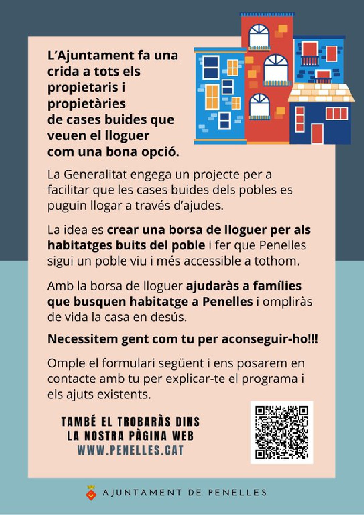 L'ajuntament de Penelles vol posar en marxa una borsa d'habitatge de lloguer, per evitar la despoblació del municipi. Fa una crida als veïns a sumar-se al programa d'ajudes de la Generalitat per rehabilitar cases deshabitades