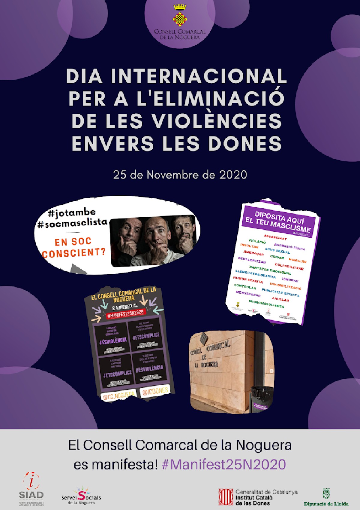 Aquest any 2020, el Consell Comarcal de la Noguera ha organitzat al voltant del dia 25 de novembre, Dia Internacional per a l'eliminació de la violència envers les dones, un seguit d'activitats per manifestar el seu rebuig.
