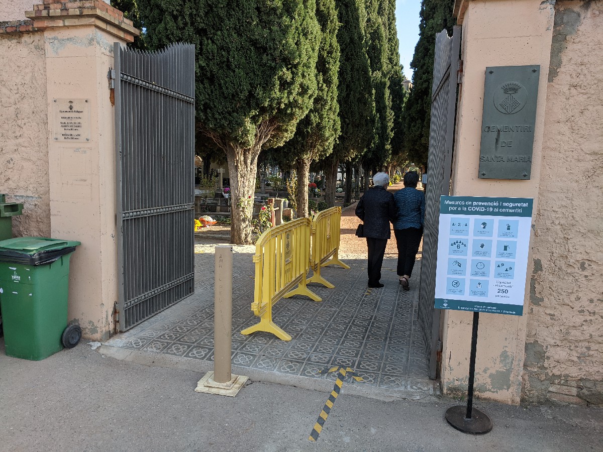 Aquest diumenge 1 de novembre, dia de Tots Sants, els cementiris de Balaguer reben centenars de ciutadans amb mesures de seguretat per la Covid 19. Al cementiri vell els Agents Cívics controlen la capacitat màxima a 250 persones