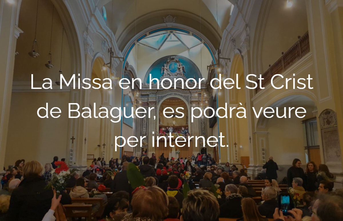 La Parròquia de Balaguer oferirà la Missa del Sant Crist, presidida pel bisbe Joan-Enric Vives, pel seu canal de Youtube. Es farà per evitar aglomeracions a l'església, una mesura que ja es va dur a terme durant el confinament