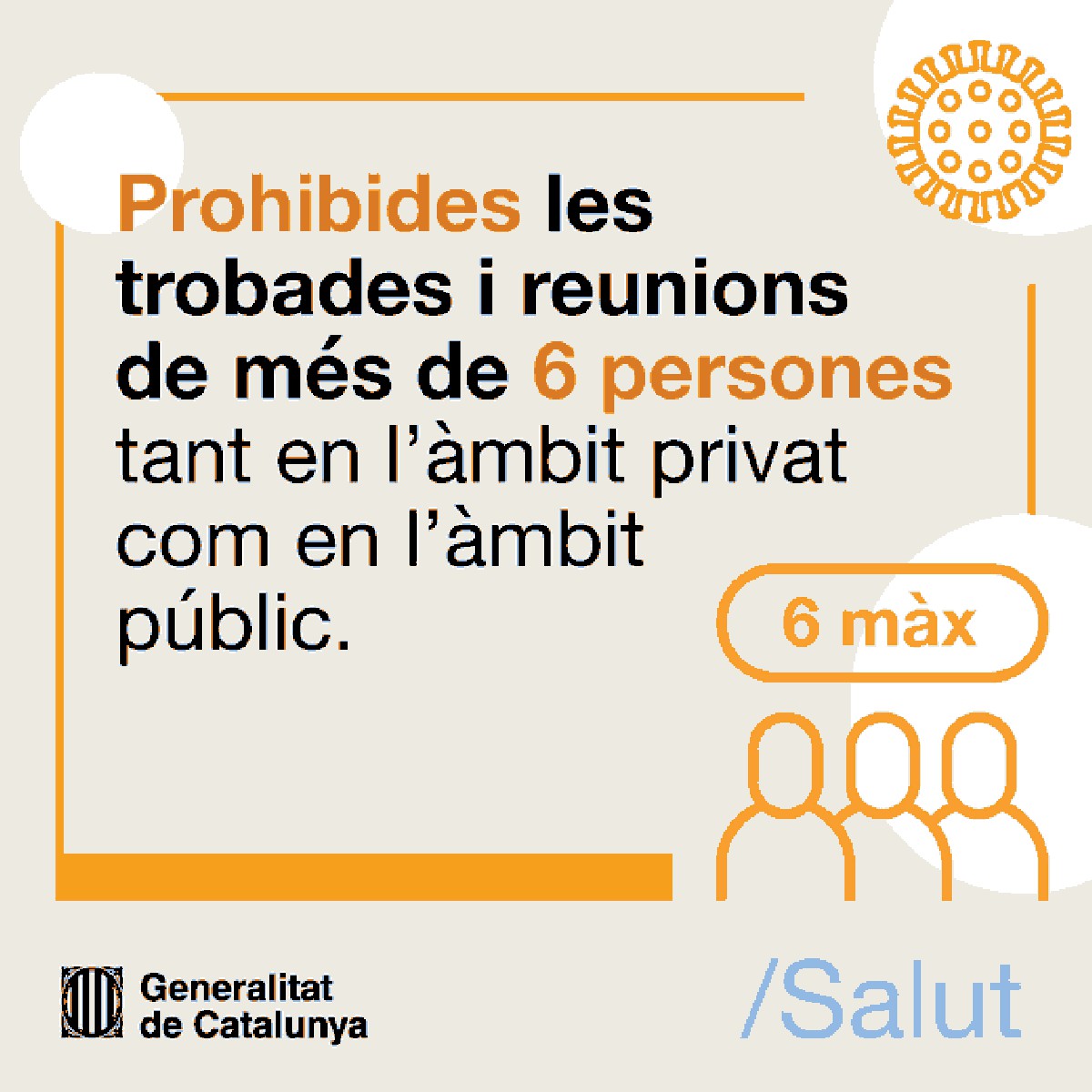 Salut prorroga 15 dies més la prohibició de fer reunions socials de més de sis persones. El DOGC publica una resolució per ampliar la vigència de les restriccions per frenar la covid-19