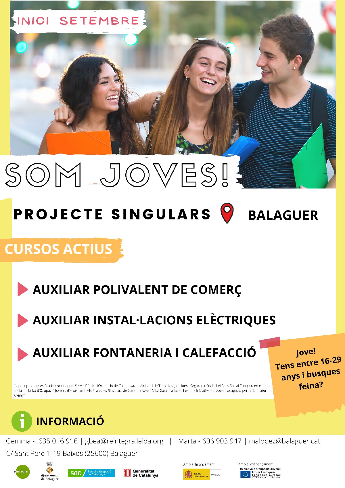 La Paeria de Balaguer i l'Associació Reintegra posen novament en marxa el projecte Singulars, l'objectiu del qual és la inserció laboral de les persones joves d'entre 16 i 29 anys