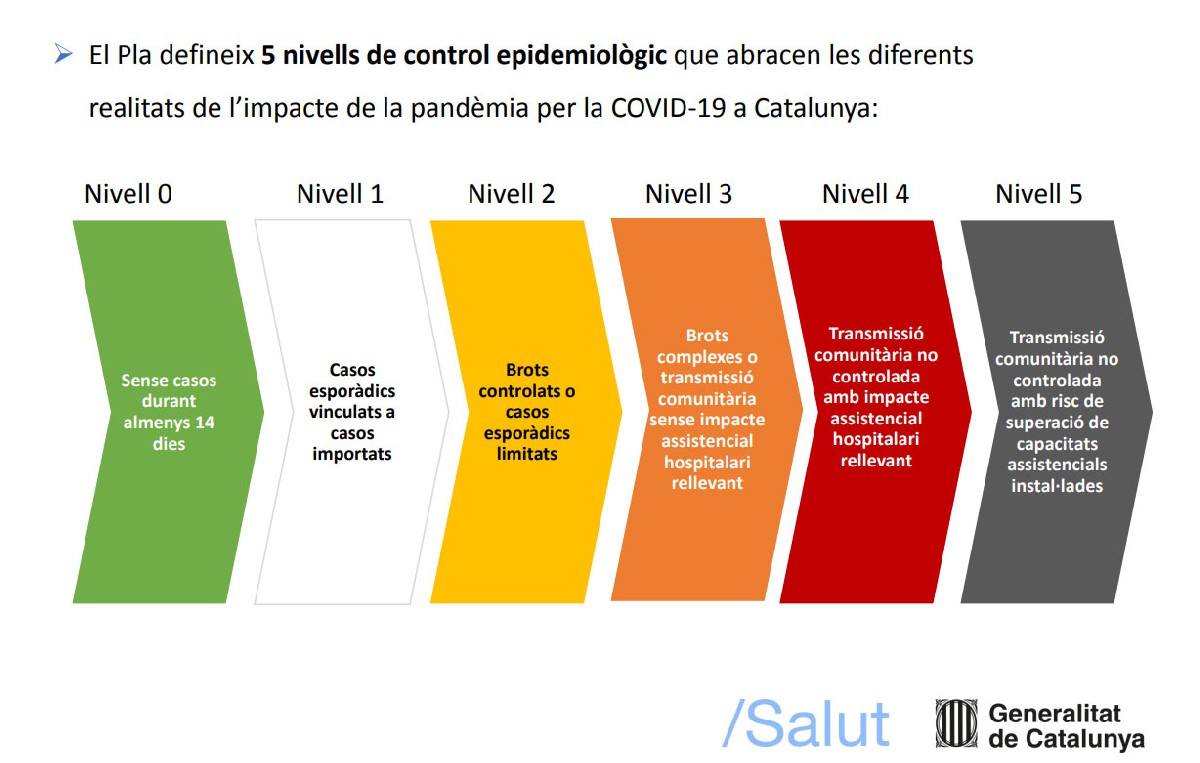 Salut presenta un pla per disminuir la transmissió del virus i trencar les cadenes de contagi, que estableix en 5 nivells de control epidemiològic les diferents realitats de l'impacte de la COVID-19 a Catalunya.