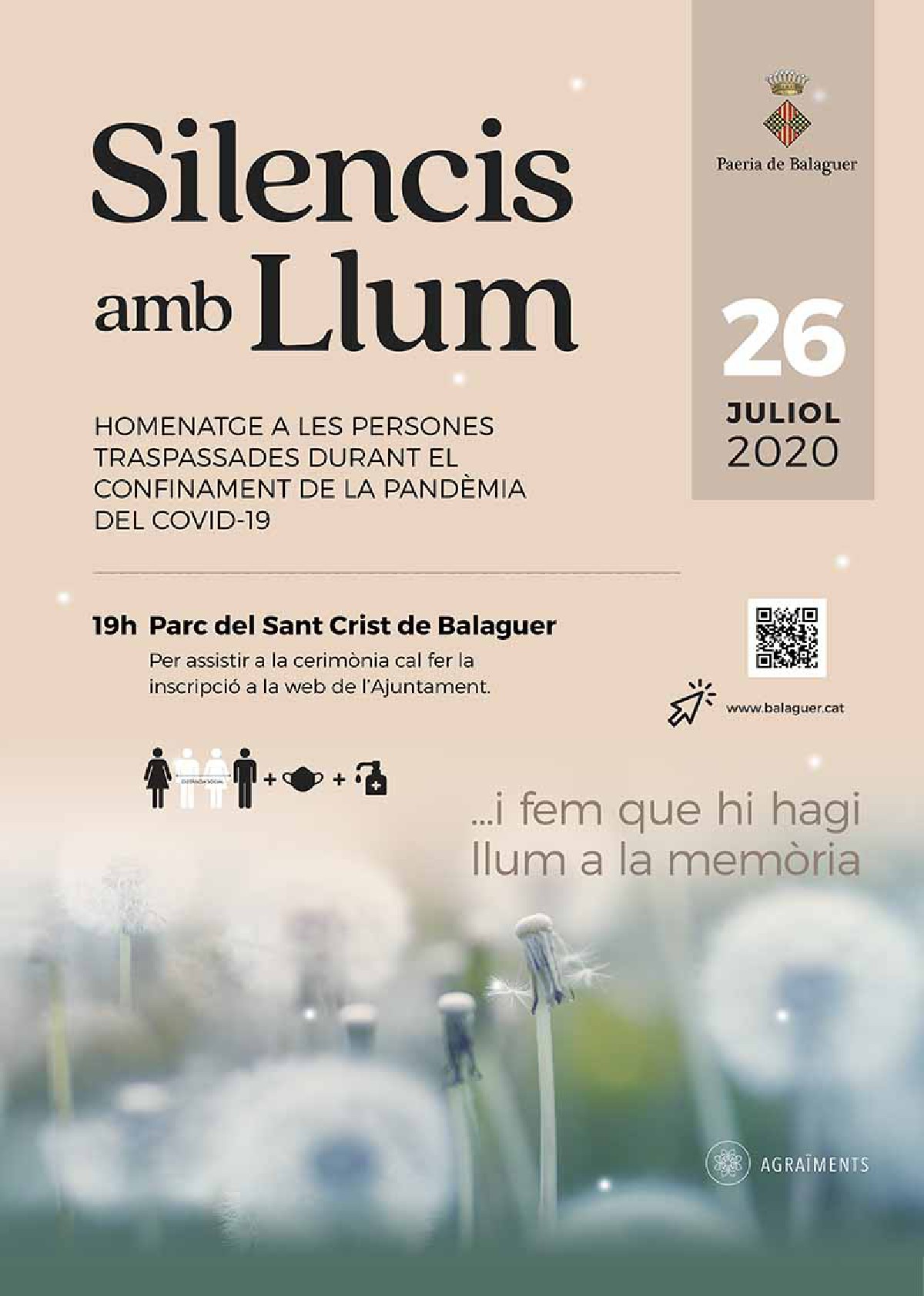 La Paeria de Balaguer ha ajornat la cerimònia Silencis amb llum' prevista pel proper diumenge 26 de juliol al parc del Sant Crist com a mesura de seguretat per l'increment de casos per Covid-19