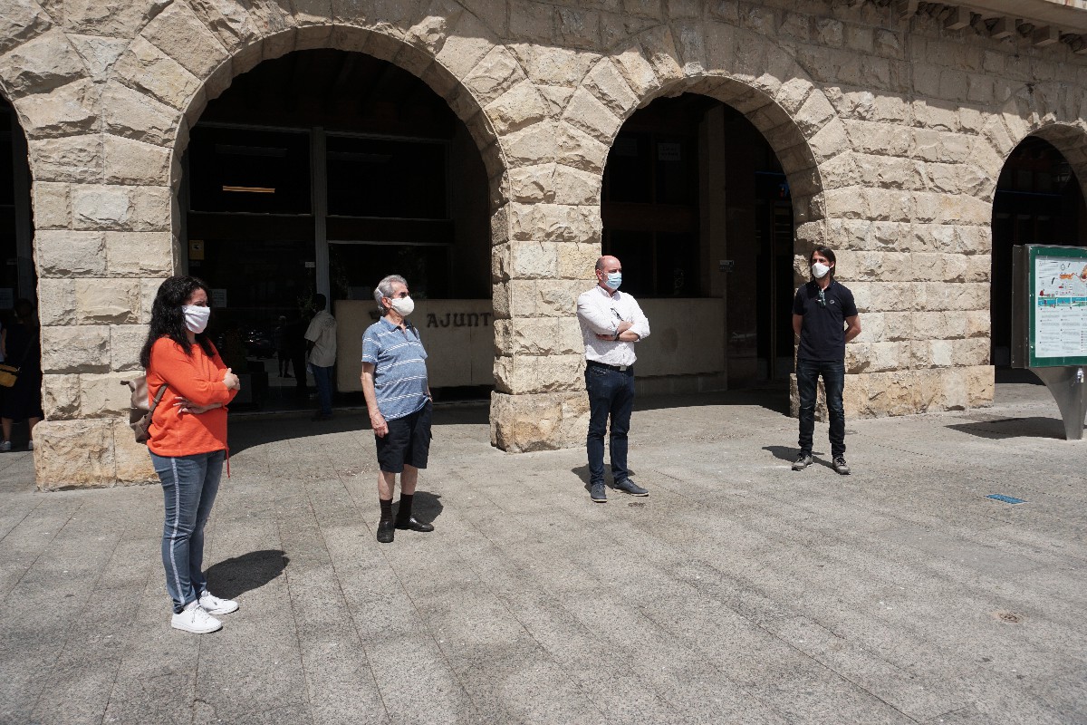 Els treballadors de la Paeria de Balaguer es sumen al minut de silenci realitzat aquest dimecres a les 12 del migdia per les víctimes mortals del coronavirus. L'acte s'ha fet simultàniament a molts edificis públics.