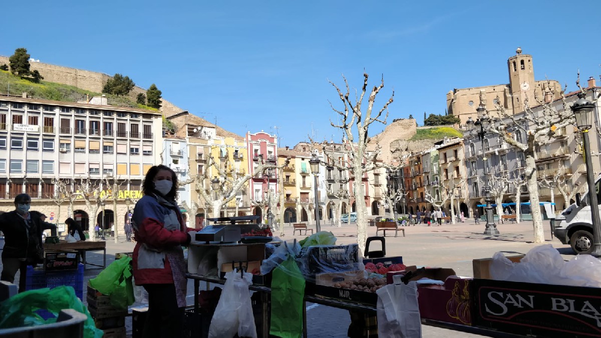 Balaguer ha tornat a celebrar aquest dissabte el seu mercat setmanal amb una dotzena de parades dedicades exclusivament a l'alimentació com ja va passar la setmana passada com a mesura preventiva pel coronavirus