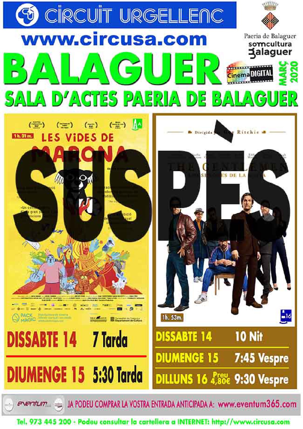 La Paeria de Balaguer suspèn també les projeccions al Cinema Balaguer pel coronavirus