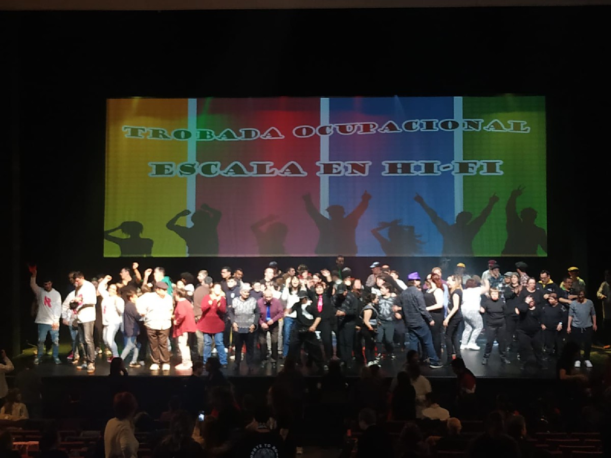 Fins a 195 persones d'11 tallers ocupacionals de la província de Lleida han participat aquest dijous al Teatre Municipal en una Trobada Ocupacional Escala en Hi-Fi organitzada pel Taller L'Estel de Balaguer